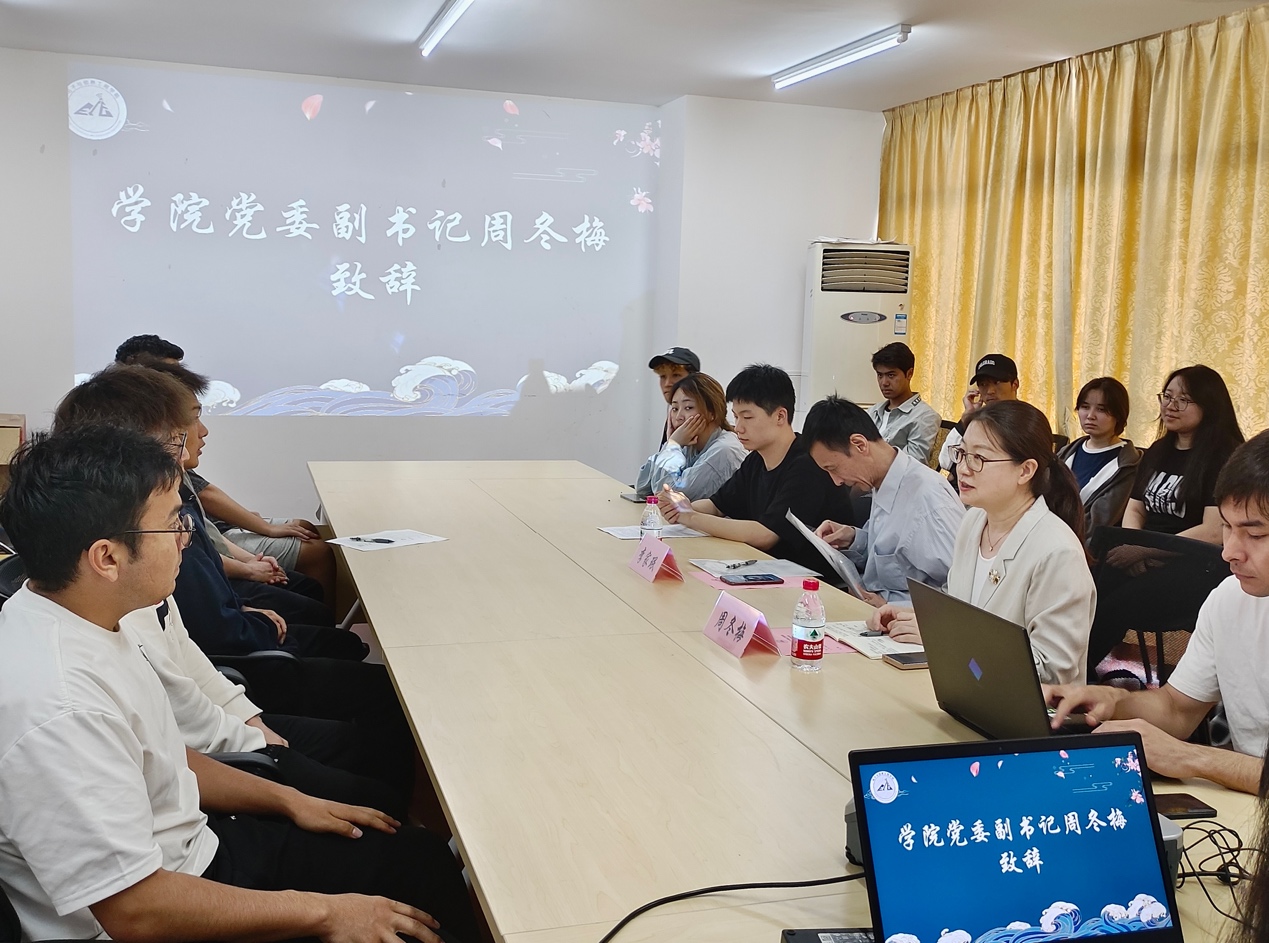 周冬梅介绍了学院在少数民族学生中主要开展的工作和活动,她强调,学院一直以来非常重视少数民族学生的教育和帮扶工作,鼓励少数民族学生认真面对每一场考试,努力提升个人综合素质,珍惜美好时光,坚定理想信念,铸牢中华民族共同体意识,把个人奋斗融入党和人民的事业之中,让青春在报效祖国、服务人民、建设家乡的伟大实践中闪闪发光。