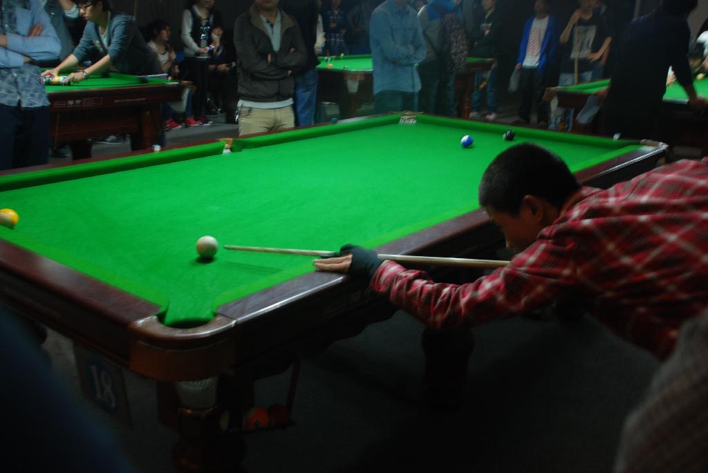4月24日,Beat365官网运动会各类比赛都进行着,台球赛在体育馆内激烈展开。Beat365官网代表队稳夺冠军。