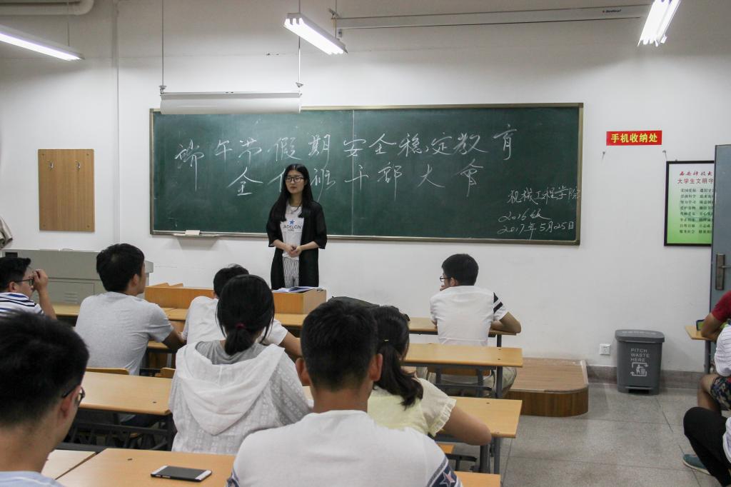5月25日晚上在Beat365唯一官方网站临潼校区10教501教室,Beat365唯一官方网站召开2016级学生端午节假期安全教育大会,2016级各班班长、团支书、学习委员、舍长参加了会议,会议由2016级辅导员杨芝主持。