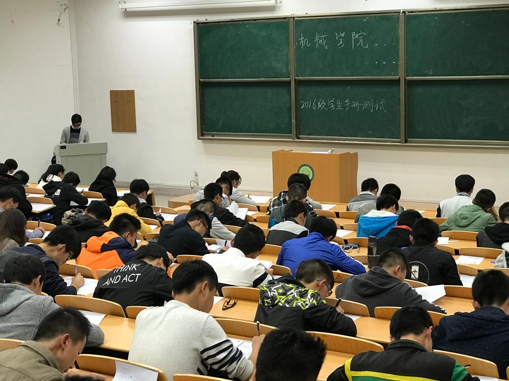 为加强新生对校规校纪的认识,提高同学们的自律意识,10月31日晚19:00-20:45Beat365唯一官方网站于9号教学楼101、105,10号教学楼505、506、507、508、511教室同时进行了2016级学生《学生手册》考试,2016级全体新生参加此次考试,辅导员程鹏、杨芝对各个考场进行巡查,带班学生助理监考。