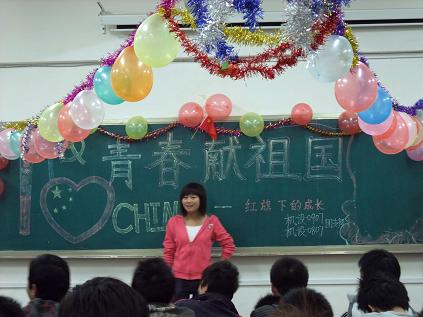 10月18日,在大二团支部的协助下,大一新生第二次团日活动如期举行。这次活动主要围绕建国六十周年祖国变化及对自己的影响这一主题进行。同学们谈及了六十年来祖国的巨变,人民生活水平的提高和自己对祖国的热爱之情! 并表示了努力学习.立志报国的决心!这次活动的举行增强了大一、大二之间的交流,增进了他们之间的友谊,同时也对大一同学树立自己大学生活的奋斗目标,明确未来的前进方向产生了积极的影响。