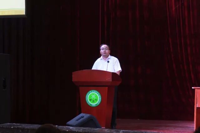 会议的第六项由机械学院党委书记汪卫兵教授介绍了学院的发展历史、发展现状和未来发展方向,并代表学院对同学们提出了明确的要求,指明了奋斗目标及方向,提出对新生的希望与期盼,表明同学们要快乐学习,珍惜学习时光,将自身学习生活事务与学习相结合使得学习更加轻松。