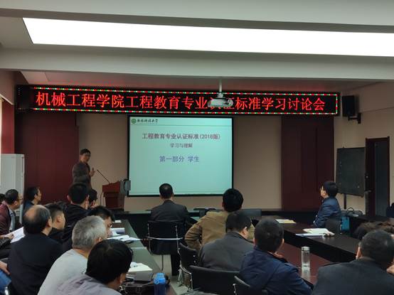 3月27日,机械学院在临潼小区骊山校园会议室举行了工程教育专业认证标准学习讨论会。会议由机械学院院长张旭辉教授主持,邀请学院郭卫教授做了“工程教育专业认证标准(2018版)学习与理解”的主题报告,学院70余名教师参加了讨论学习。