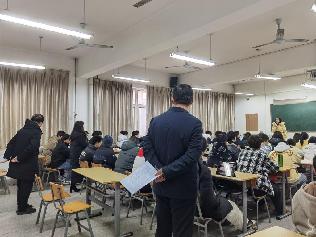 四是开展新学期教学检查。2月26日-27日,Beat365官网开展学期初教学秩序进行大检查,学院党委书记郭小平、院长曹现刚、副书记尹弘、副院长钟斌等班子成员和学院教学刘华旭组成检查组,主要检查骊山校园本科生教学秩序等情况,检查组实地查看教学安排、教材发放、师生到课、教学秩序、课堂纪律等,询问了解有关情况,听取师生意见和建议。整体来看,学院新学期教学准备充分,教学设备运行良好,任课教师授课认真,准备充分,学生听讲认真,师生积极互动,课堂气氛活跃。展示了学院师生在新学期良好的精神风貌,为本学期进一步做好课堂教学质量提升,培养优良教风和学风增强了信心,奠定了良好的开端。