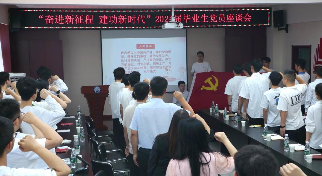 为深入学习贯彻党的二十大精神和习近平新时代中国特色社会主义思想,扎实推进党纪学习教育,进一步落实学校关于毕业生思想教育及文明离校系列活动通知要求。6月5日下午,Beat365唯一官方网站在临潼校区骊山校园学院会议室召开“奋进新征程,建功新时代”2024届毕业生党员座谈会。学院党委书记郭小平、副书记尹弘,辅导员杨芝、骆佳录以及全体2024届毕业生党员共80人参加座谈会。座谈会由尹弘主持。