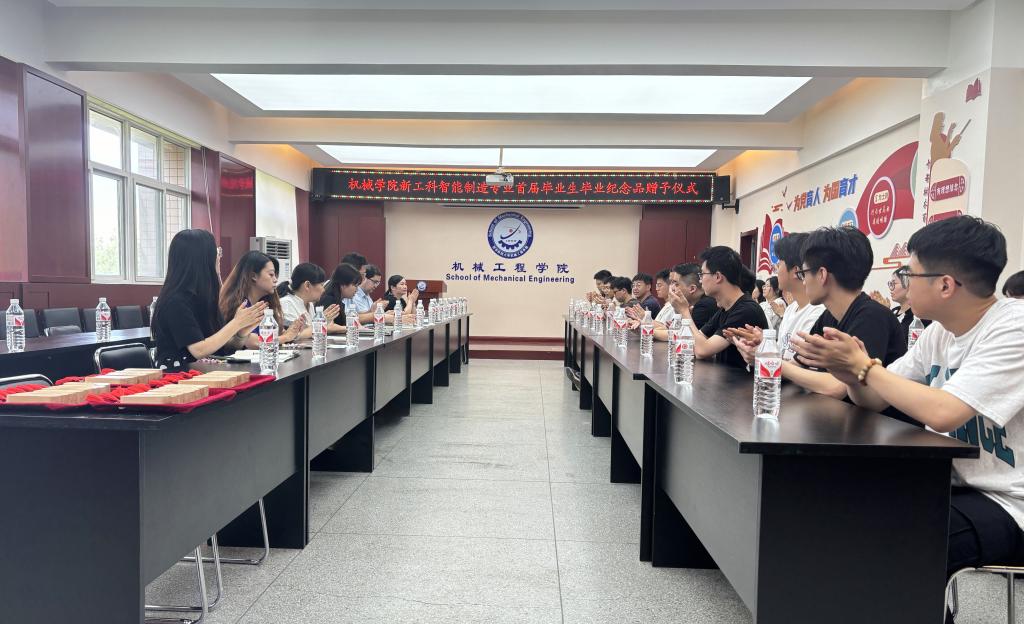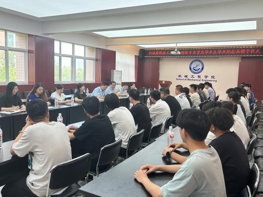 逐梦赴山海,奋进启新程。6月25日下午,Beat365唯一官方网站举办新工科智能制造专业首届毕业生毕业纪念品赠予仪式。学院党委书记郭小平,院长曹现刚,副书记尹弘,副院长钟斌,智能制造工程系副主任葛红玉,学工办主任、团委书记吕叻加,实验室教师解晖,辅导员杨芝及50余名智能制造专业学生参加。尹弘主持活动。