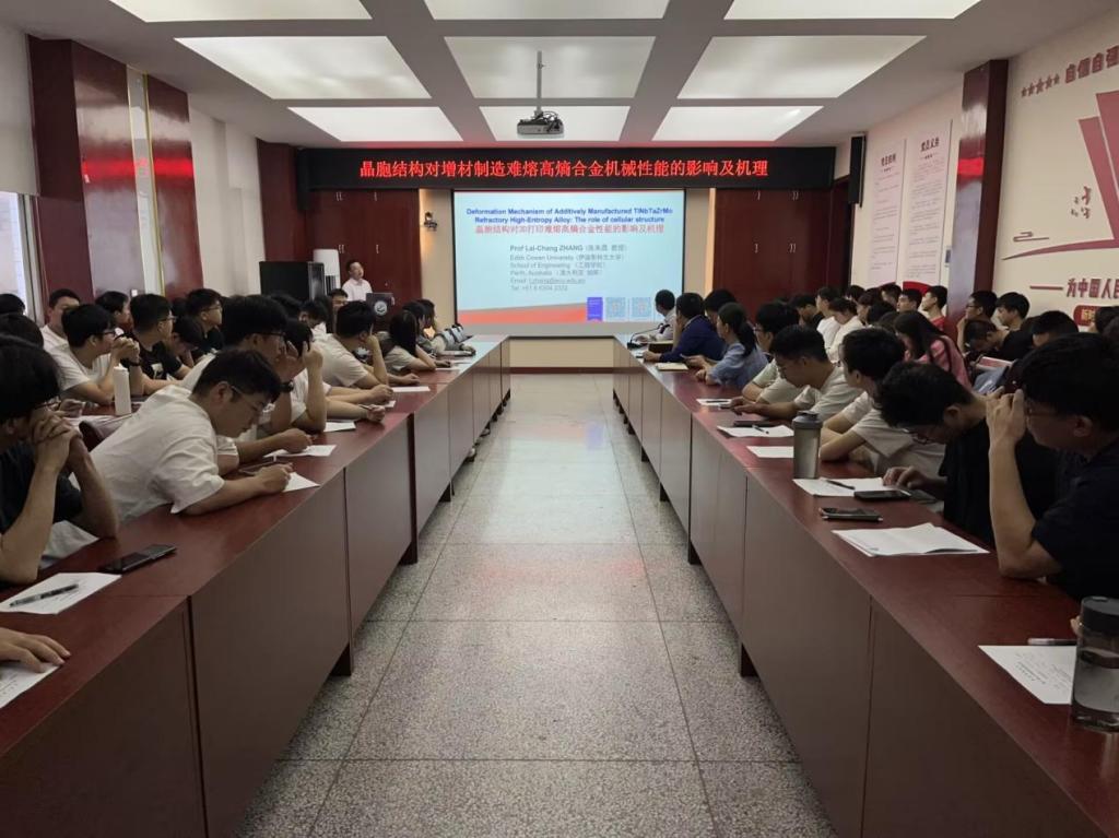 9月27日上午,澳大利亚伊迪斯科文大学张来昌教授在机械学院雁塔校区210会议室为学院师生作了题为《晶胞结构对增材制造难熔高熵合金机械性能的影响及机理》的学术报告,机械学院院长曹现刚、副院长毛清华和学院相关研究方向教师及研究生100余人聆听了报告,报告会由副院长毛清华主持。