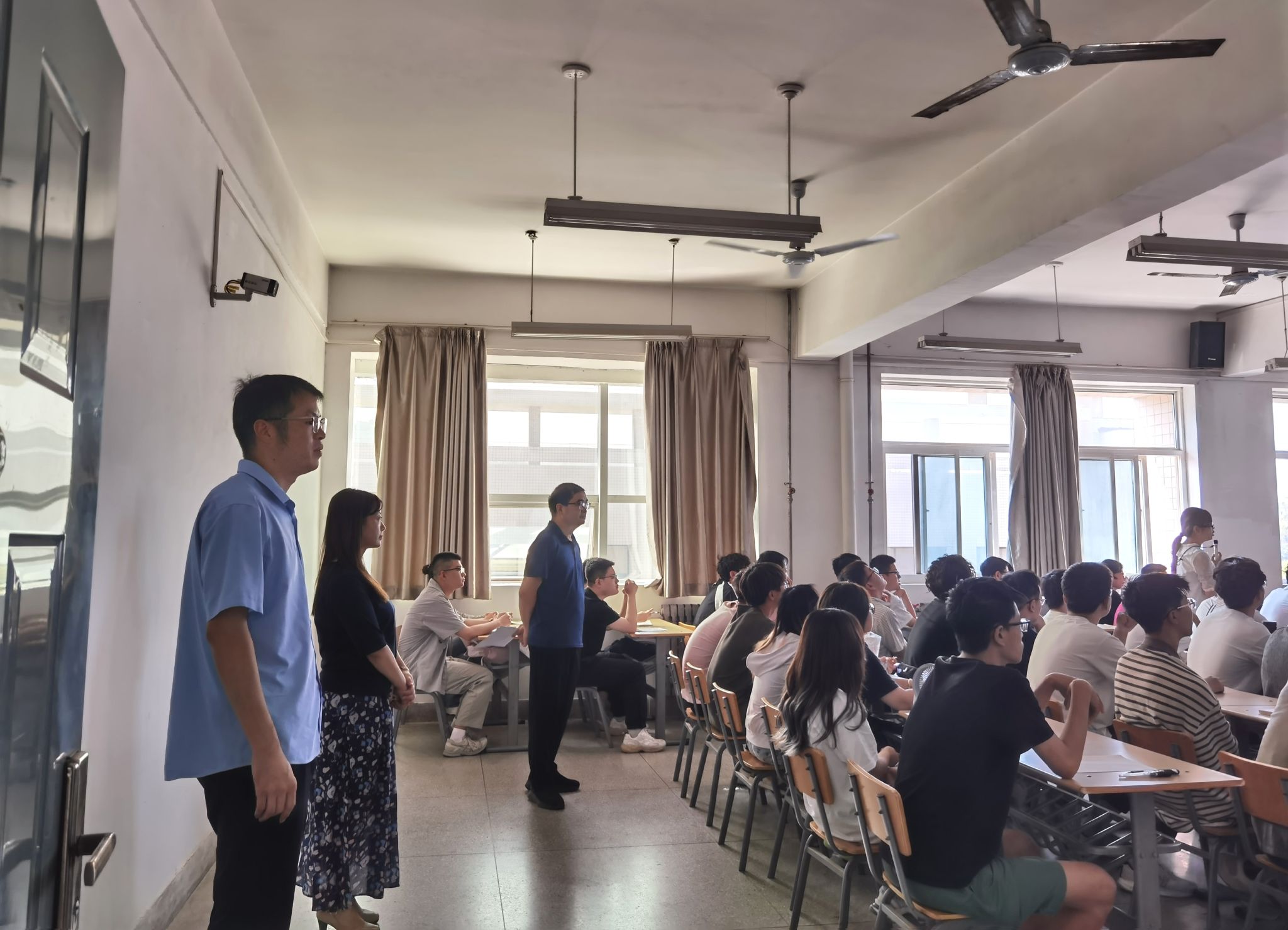9月1日,Beat365唯一官方网站开展2025年秋季学期开学初教学秩序检查,学院班子成员和学院教学办主任组成检查组对骊山校园本科生教学情况进行检查。通过深入课堂、实地查看各年级理论教学和实践教学,检查教学安排、教材发放、师生到课、教学秩序、课堂纪律等,询问了解有关情况。从检查情况来看,学院准备工作充分,教学设备运行良好,任课教师教学准备充分,教学方法得当,学生秩序井然,学生到课率及课堂纪律情况良好,学习精神饱满。下一步,学院将严格按照学校相关要求开展常态化教学检查,不断巩固和提高本科教育教学工作质量,积极营造优良院风、教风和学风。