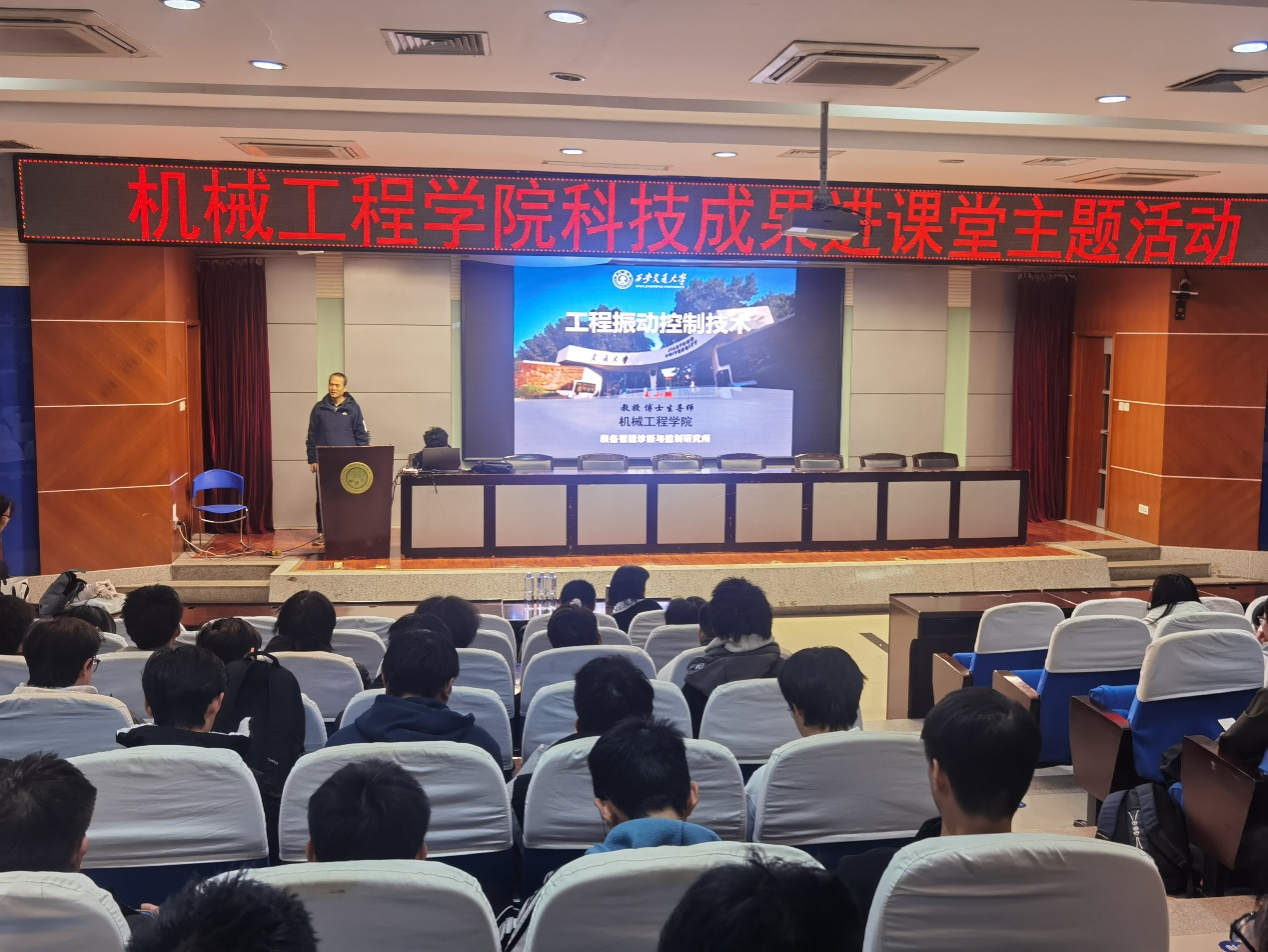 为积极对接国家“十五五”规划中“智能设计与制造”战略导向,深入贯彻落实《Beat365唯一官方网站科研成果反哺教学工作实施管理办法(试行)》《Beat365唯一官方网站本科生产教融合、科教融汇育人实施办法(试行)》等文件精神,Beat365唯一官方网站依托陕西省煤矿智能化现代产业学院等平台,将“科技成果进课堂”从构想转化为生动实践,11月26日晚,Beat365唯一官方网站在图书馆二楼报告厅成功举办“科技成果进课堂”主题活动报告会——“工程振动控制技术”“掘进工作面智能通风降尘技术及装备研究”。本场讲座由机械设计系牵头组织,学院23级、24级、25级机械设计制造及其自动化卓越、本硕、领军班200余名学生参加学习。机设系主任陈艳主持讲座。