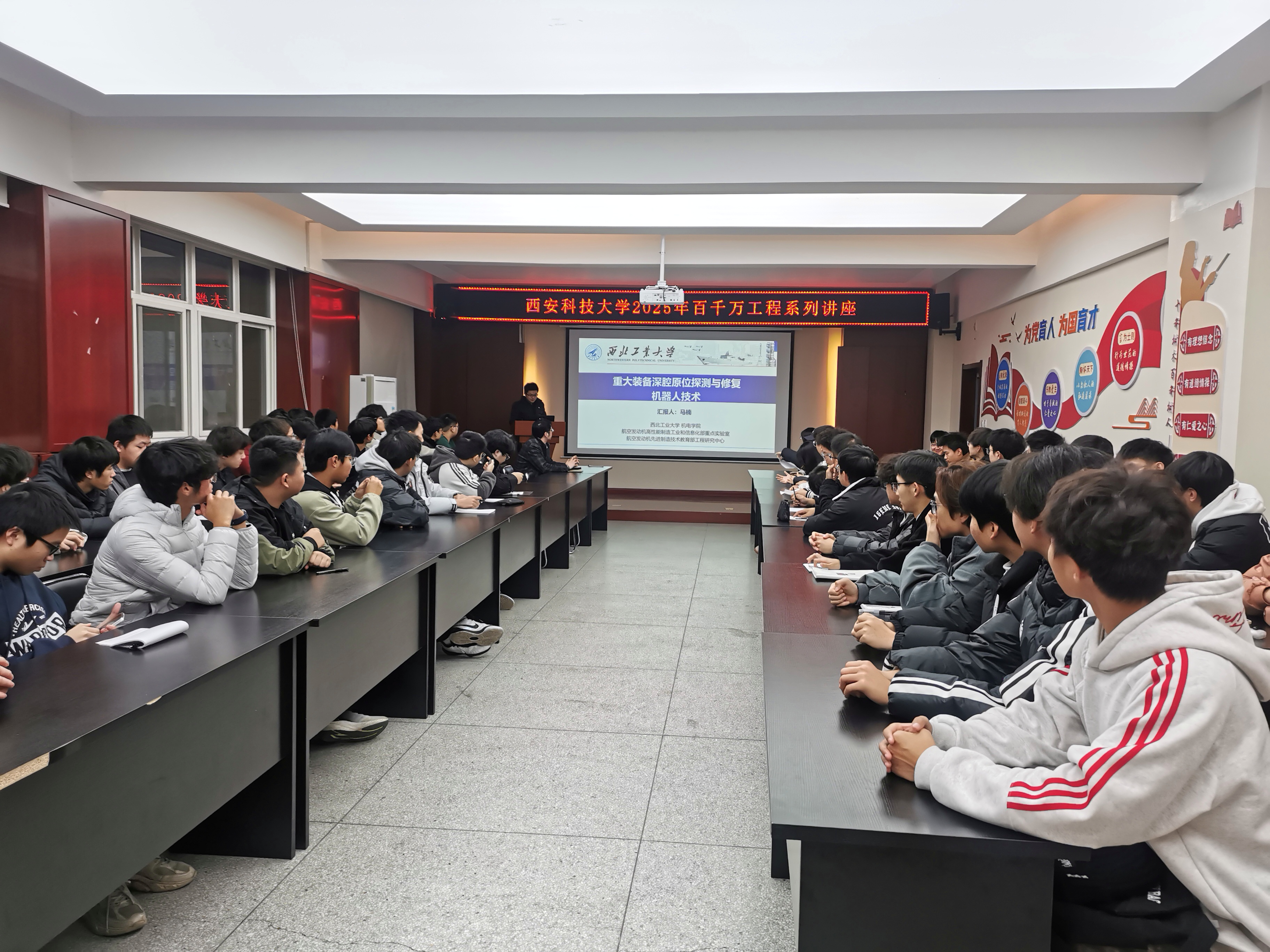 为深入贯彻落实《Beat365唯一官方网站科研成果反哺教学工作实施管理办法(试行)》《Beat365唯一官方网站本科生产教融合、科教融汇育人实施办法(试行)》以及《关于开展“百千万工程”系列讲座活动的通知》精神,激发学生对科学研究的兴趣、深化学生对科学研究的认知、提升学生的科研水平,加速形成新质生产力。12月4日晚,Beat365唯一官方网站在骊山校园学院会议室举办“科技成果进课堂”(第五场)暨百千万工程系列报告会。本场讲座由机械制造系牵头组织,特邀西北工业大学机电学院马楠教授作题为《重大装备深腔原位探测与修复机器人技术》学术报告,学院近90名机械设计制造及其自动化(领军)、本硕连读班、机电专业优秀学生代表参加本次学习活动。学院副院长钟斌副教授主持讲座。