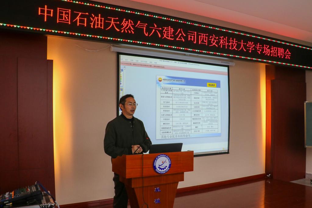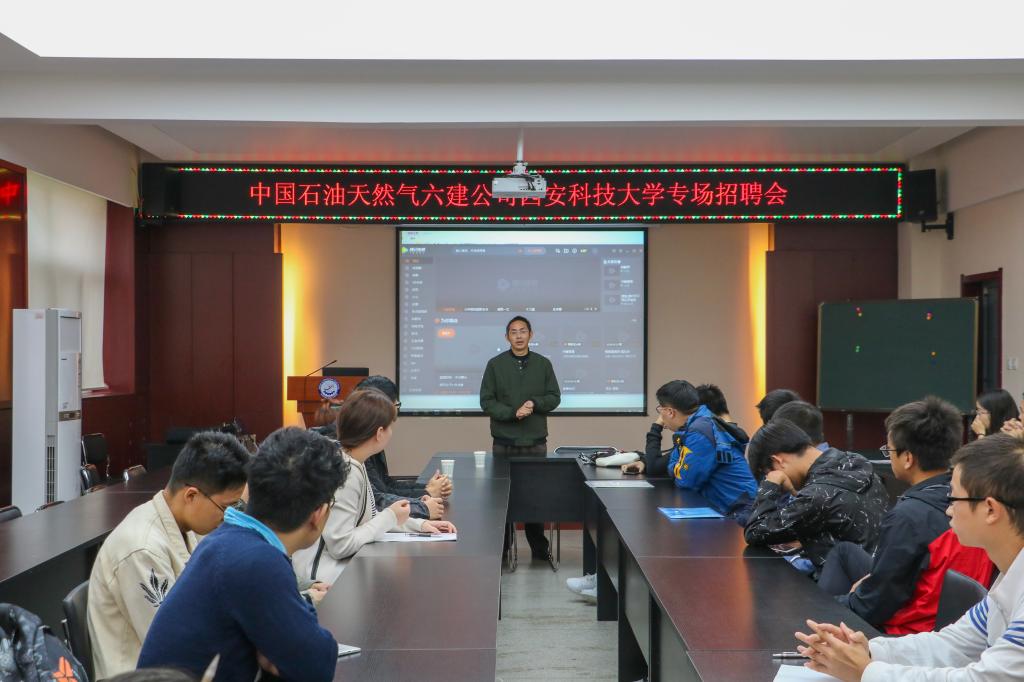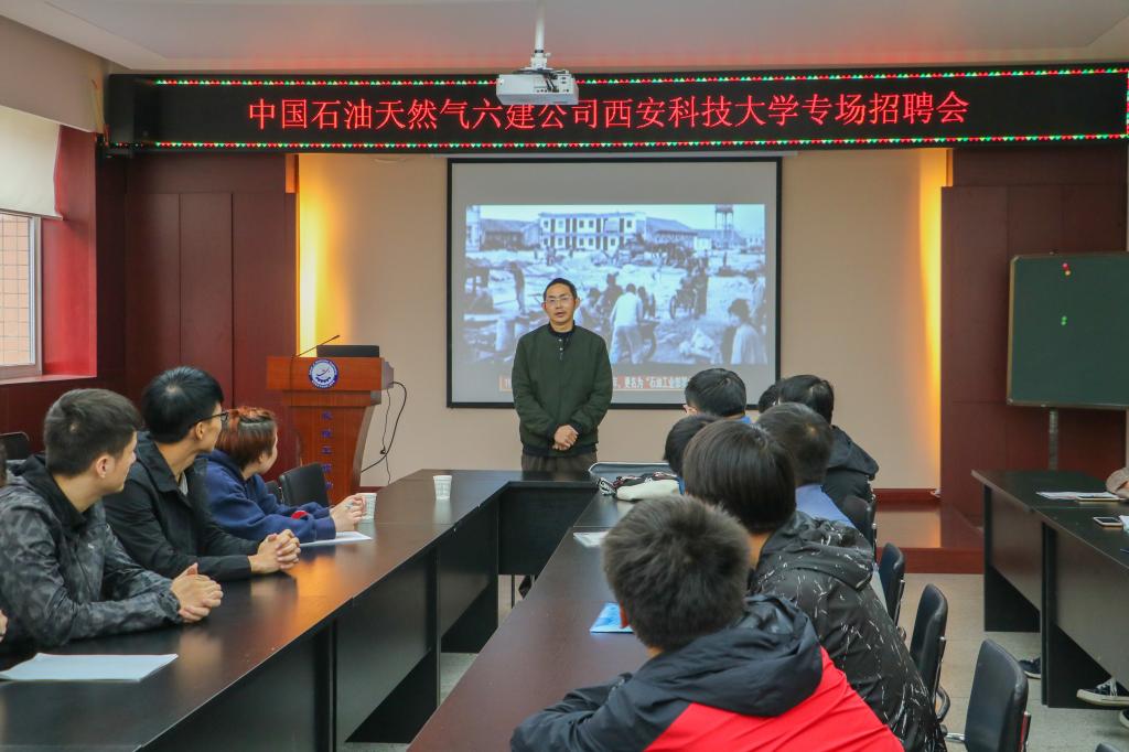 此次招聘会得到Beat365唯一官方网站领导们的大力支持,在招聘会上,主讲人先与同学们一同观看了公司成立50周年的宣传片,并介绍了中油六建的基本概况,分布范围,发展历程,技术优势等基本情况。同时,同学们积极参与问答互动,现场气氛热烈,学生表现积极,踊跃的提出并回答问题。