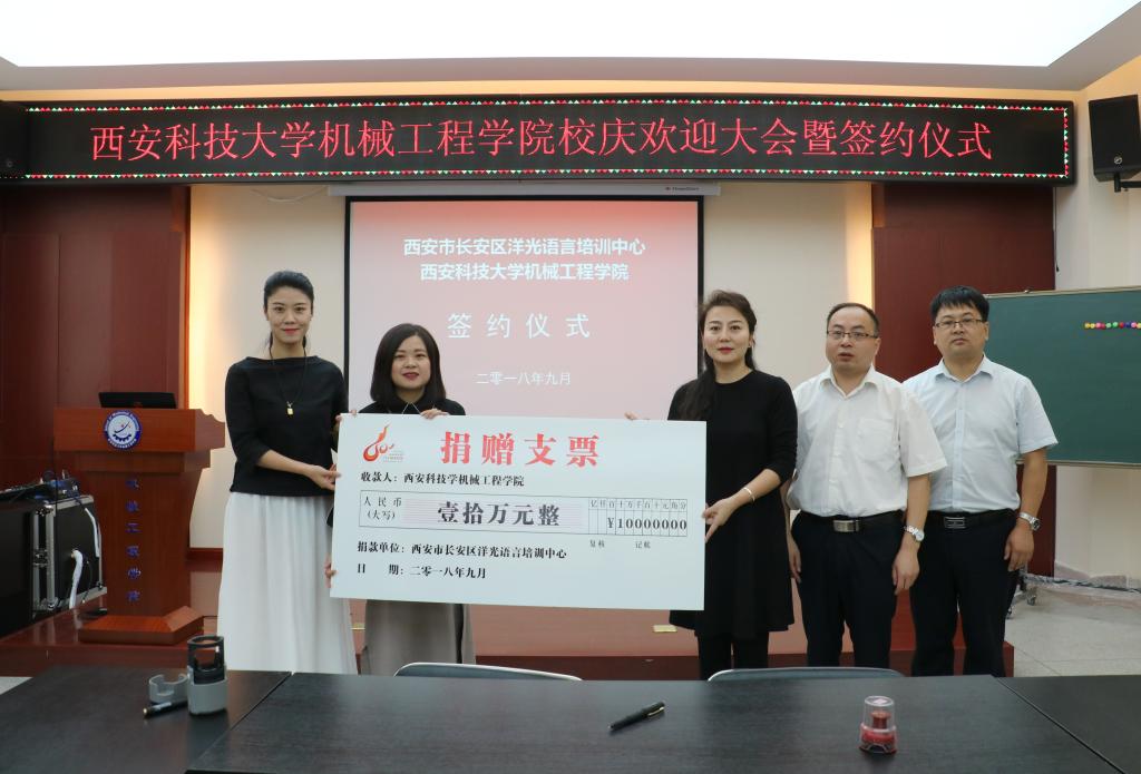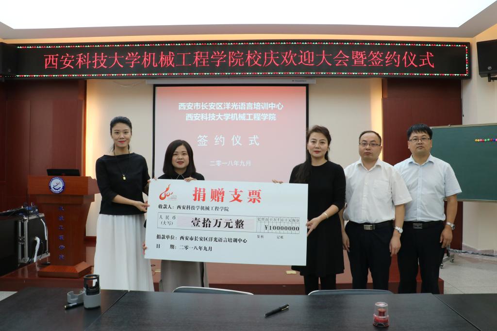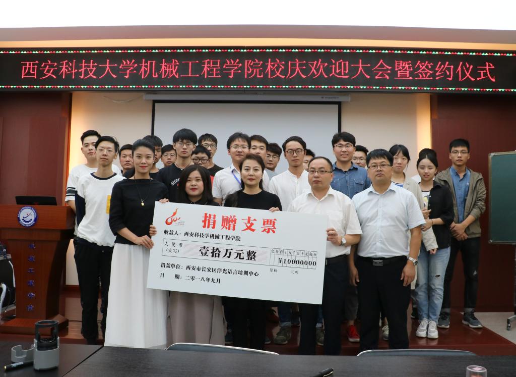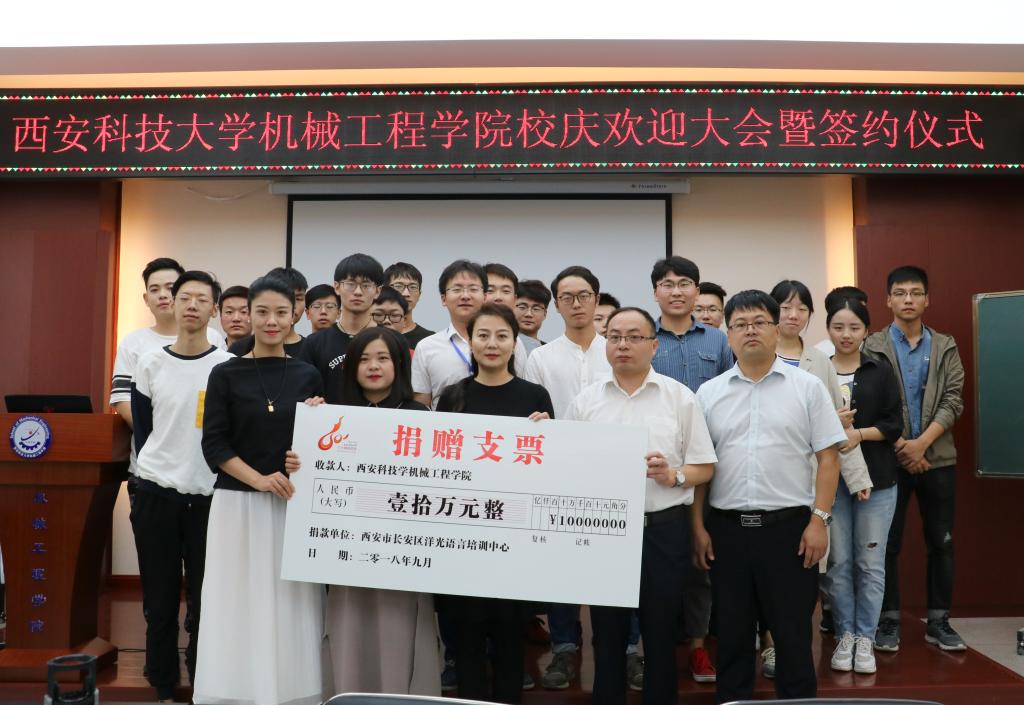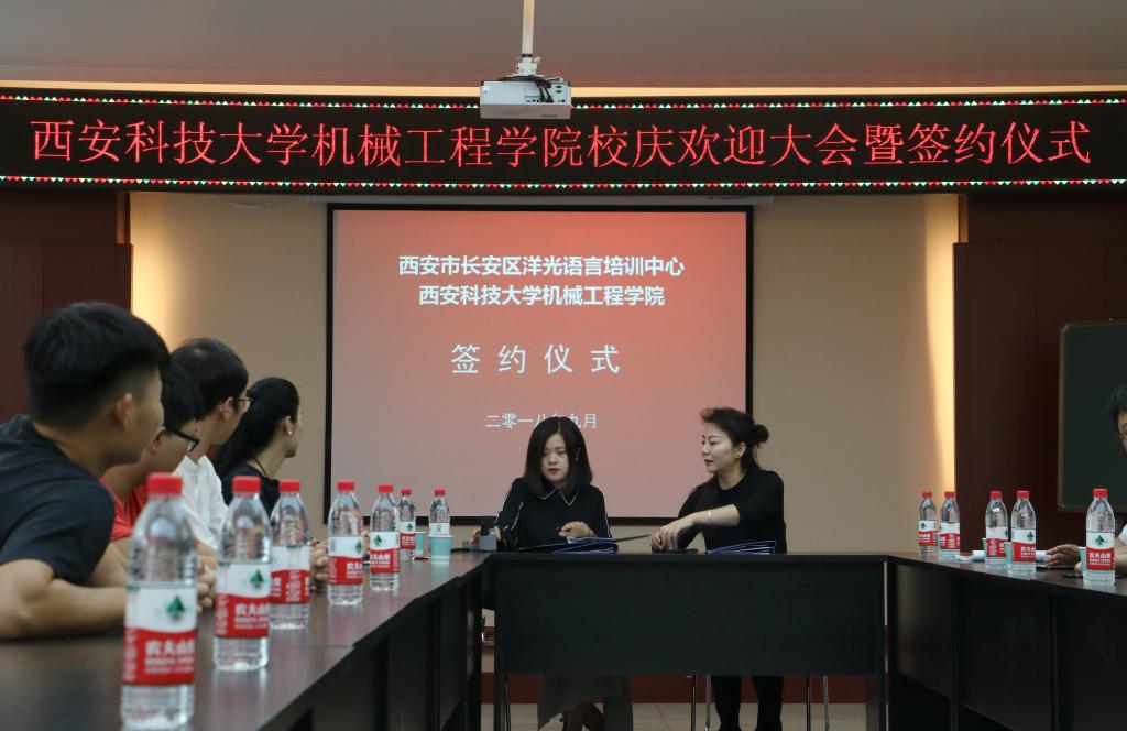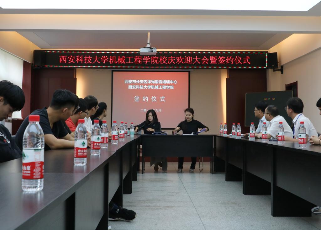 2018年9月14日上午,洋光外语外语培训机构一行人赴Beat365唯一官方网站签署阳光外语—Beat365唯一官方网站企业捐赠协议,签约仪式在临潼校区机械学院会议室进行,仪式前双方就人才培养、外语教学等议题进行了友好深入的交流,并由洋光外语培训机构与Beat365唯一官方网站分别代表两家单位签署了捐赠协议。参会的学院领导有机械学院党委书记汪卫兵、院长张旭辉、党委副书记李婉丽、副院长寇发荣,学院30余名师生也参加了签约仪式。