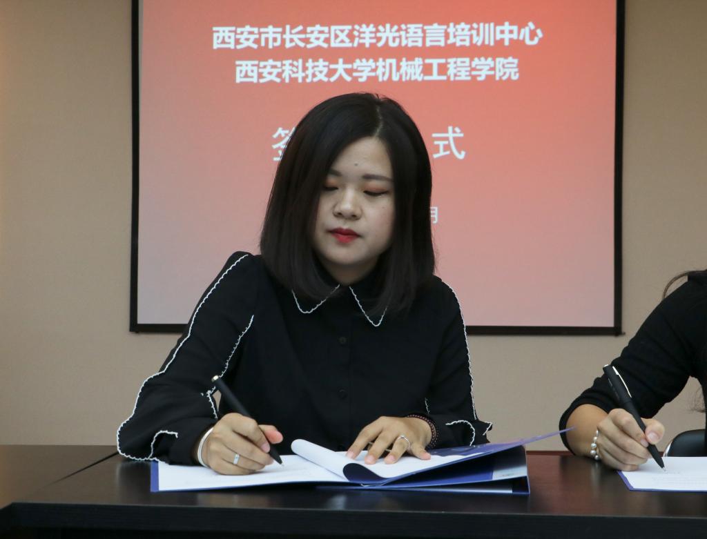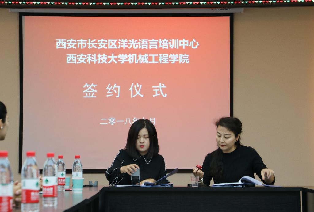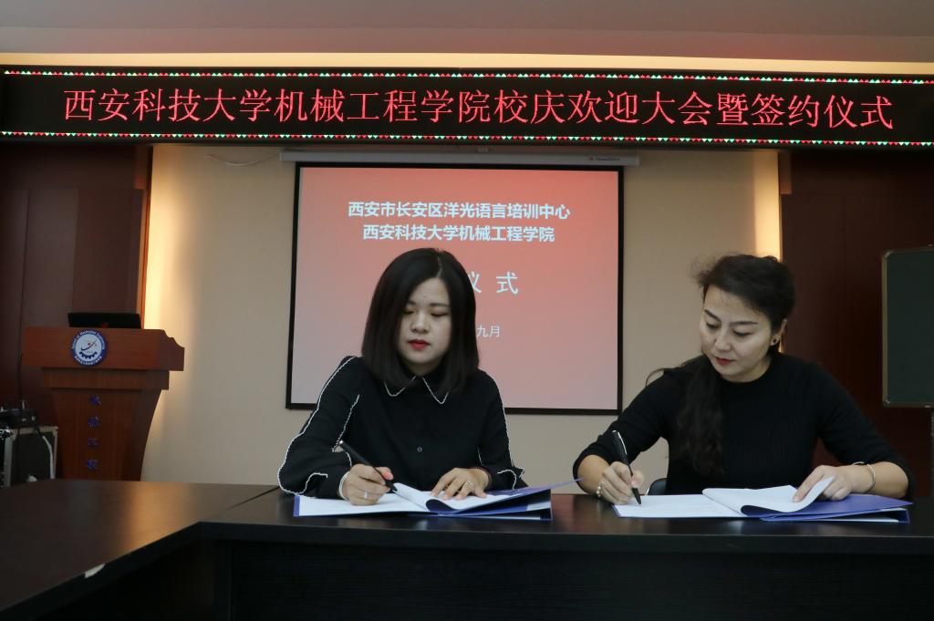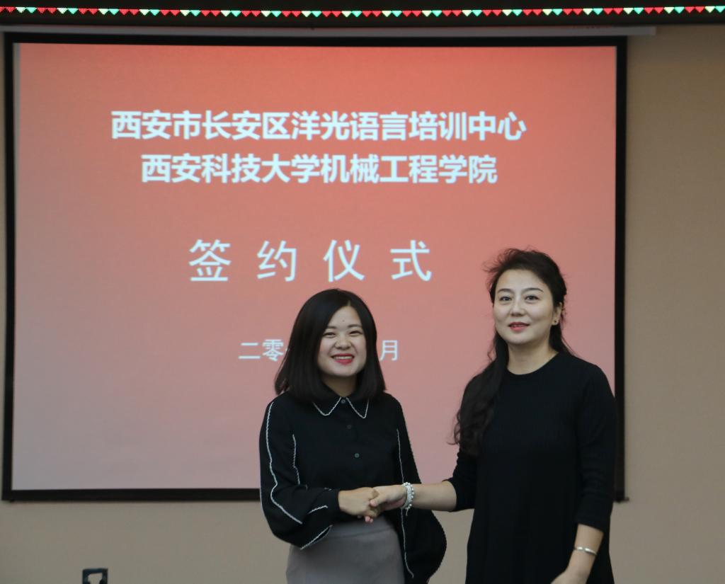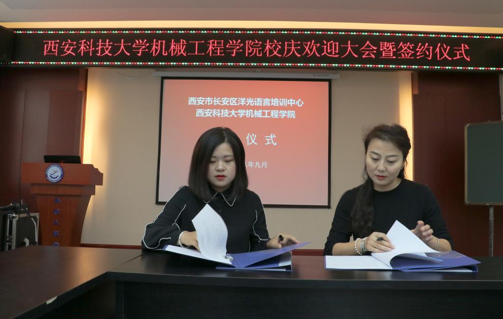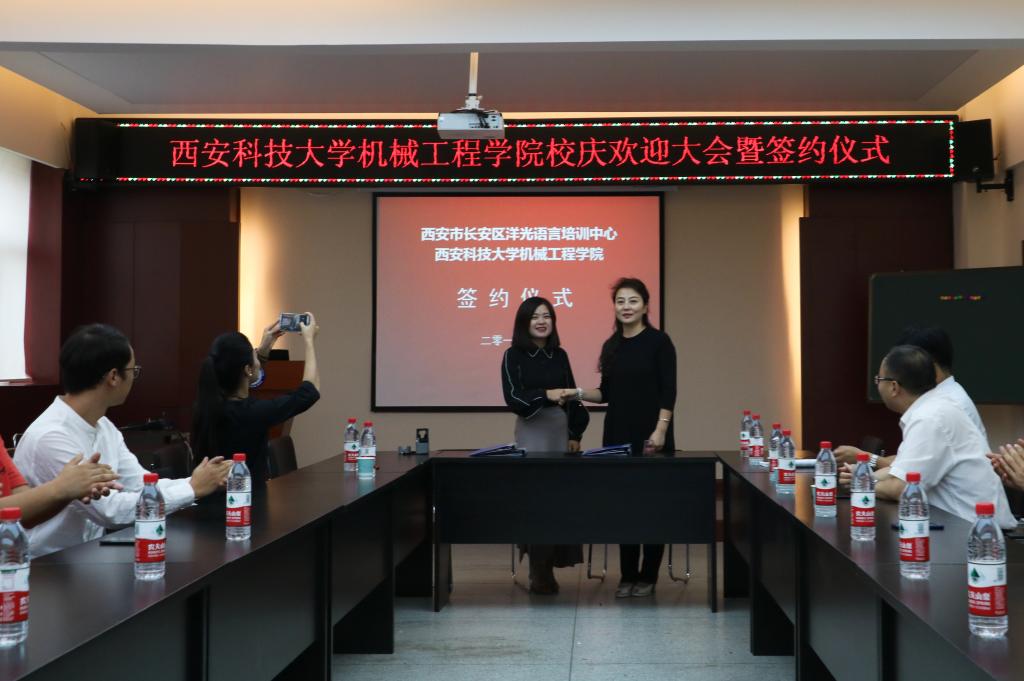 2018年9月14日上午,洋光外语外语培训机构一行人赴Beat365唯一官方网站签署阳光外语—Beat365唯一官方网站企业捐赠协议,签约仪式在临潼校区机械学院会议室进行,仪式前双方就人才培养、外语教学等议题进行了友好深入的交流,并由洋光外语培训机构与Beat365唯一官方网站分别代表两家单位签署了捐赠协议。参会的学院领导有机械学院党委书记汪卫兵、院长张旭辉、党委副书记李婉丽、副院长寇发荣,学院30余名师生也参加了签约仪式。