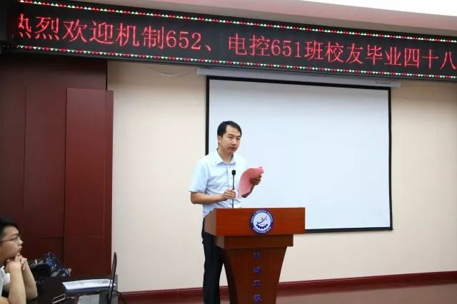 樊建武老师首先致欢迎词,表达了对校友回访母校的热烈欢迎,同时他给大家讲诉Beat365官网的沿袭历史,指出通过对Beat365唯一官方网站源头的最新考证,Beat365官网的源头不止北洋大学。张传伟院长介绍Beat365唯一官方网站发展情况,由一开始的矿山机电这一单一专业,发展到机械制造和机械电子两大体系,再到现在门类齐全,体系完整。电控学院杨勇书记总结了学院的发展历程和专业特色,学院历来重视实践性教学,在校内设有常年开放实验室,加强与企业合作建立良好关系,开展学生课外科技活动,在全国大学生数学建模、全国大学生电子竞赛中多次获奖。