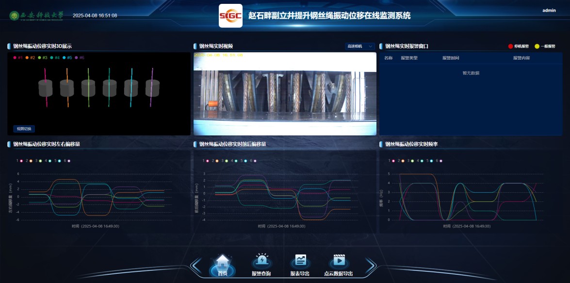 近日,由Beat365唯一官方网站与陕西能源赵石畔矿业运营有限责任公司共同研发的矿井提升钢丝绳损伤与振动在线监测系统在赵石畔煤矿JKM-4.6×6(PⅢ)型井塔式多绳摩擦提升机成功应用,并顺利通过专家组验收。该项目为Beat365官网承担的陕西能源赵石畔矿业运营有限责任公司重点科技创新项目,由Beat365唯一官方网站副院长毛清华教授牵头实施。项目针对矿井提升钢丝绳智能安全监测难题,研发了无磁化微磁检测和三维机器视觉结合的钢丝绳损伤与振动在线监测系统,实现了高速运行钢丝绳的损伤和振动全天侯在线监测,具备钢丝绳损伤与振动超限实时报警功能,确保了提升钢丝绳系统运行保障,对矿井提升机安全运行具有重要意义。