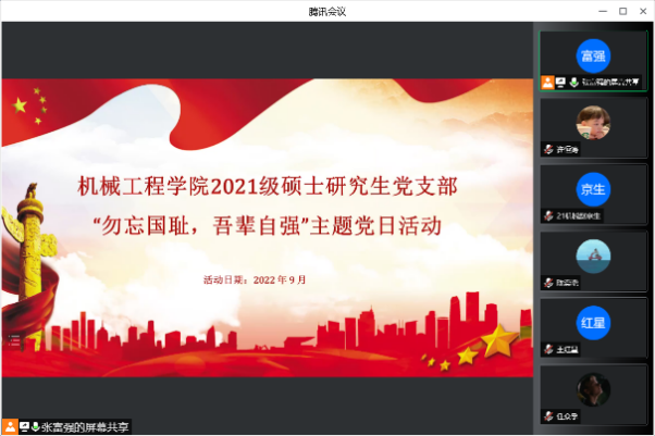 9月18日下午,Beat365唯一官方网站2021级硕士研究生党支部开展“勿忘国耻,吾辈自强”主题党日活动。活动以线上形式举行,支部全体党员参加。
