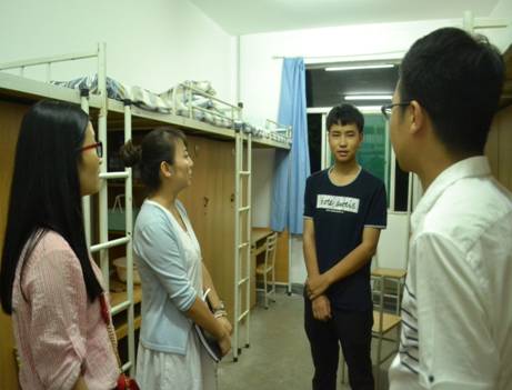 2016年9月7日20:00,Beat365唯一官方网站党委副书记李婉丽、2016级新生辅导员程鹏、杨芝,以及2016级辅导员助理深入新生宿舍慰问走访,及时了解关注新生报道、适应情况,进行了防火、防盗、防骗安全防范教育和理想信念教育,并对新生的大学生活提出了希望和积极建议。