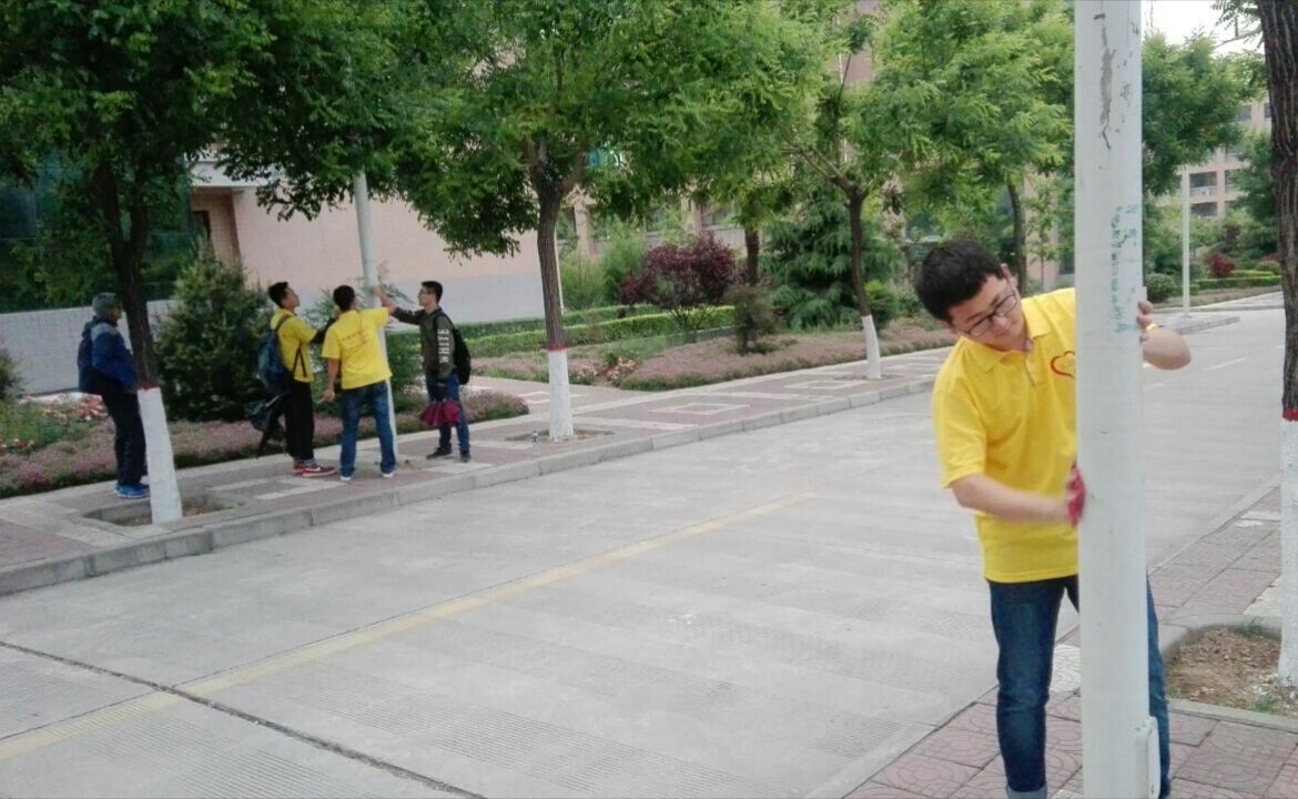5月7日下午6点,在吕老师的安排下,大家分工明确、配合默契,各就其位,去清理学校所有路灯表面的广告贴纸和异物,虽然天下着蒙蒙细雨,但大家热情高涨、态度积极,这一切丝毫没有影响大家的工作效率。在吕老师的带领下,同学们用了两个半小时的时间,把Beat365官网打扮的清爽洁净,焕然一新,大家无不被“众人拾柴火焰高”的工作效率所折服,这也在无形间验证了团结协作在活动中的重要性,大家坚信:只要同心协力,没有克服不了的困难。