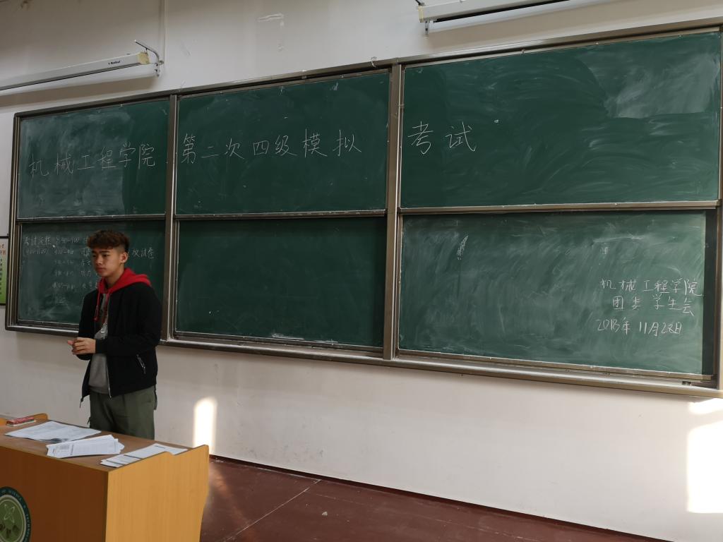 这次考试完全模拟正式考试的流程,学生在有人监考,杜绝手机的环境下,训练自己的答题能力。考试内容包括听力、阅读、写作、翻译四种题型。考试考风严正,纪律严明。考试过程中,学生们全神贯注,埋头做题,考场气氛严肃。
