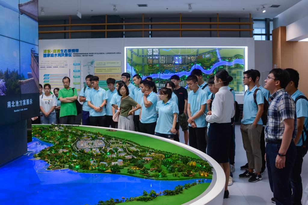 上午十点四十五分实践团依次参观了中俄丝路产业园和诗经里。中俄丝路产业园是中俄两国政府间的合作项目,致力打造丝路沿线国家科技经贸合作和人才交流的标杆;“诗经里”小镇是沣滨水镇一期开发的创意产业板块,开创性地打造了诗经主题和诗意生活方式业态规划。