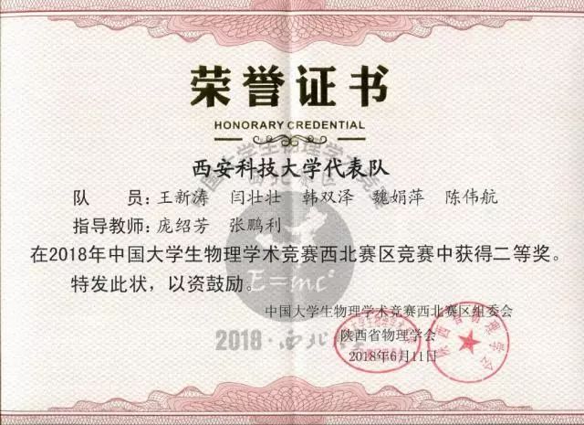 6月9日至11日,由中国大学生物理学术竞赛西北地区组委会、陕西省物理学会主办的2018中国大学生物理学术竞赛(西北赛区)在西北大学长安校区举行。包括Beat365唯一官方网站内的17个学校的41支队伍的同学进行了比赛,经过三天五轮紧张的激烈角逐,Beat365官网三支参赛队均获二等奖。其中,机械学院有5人获奖,分别是魏娟萍,马雯,吴超,孙信荣,齐广浩。
