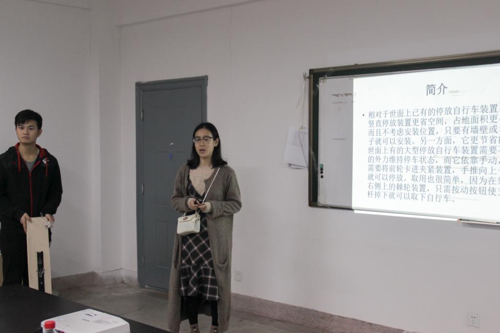本届机械创新设计大赛参赛组共43组,答辩分为A,B两组同时进行,A组22支参赛组,B组21支参赛组,答辩开始后,选手们按照出场顺序,以PPT,视频及创意模型的方式生动而形象的介绍了自己的参赛作品。介绍完毕后,评委老师向选手们提出了建议和改进思路,赛场的氛围热力四射而不失庄重。