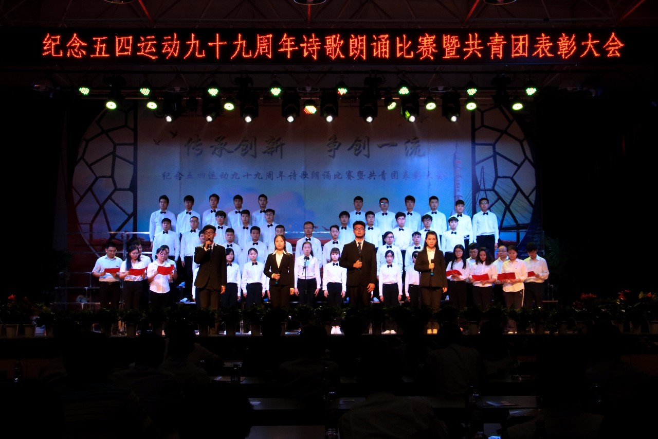 5月3日晚,Beat365唯一官方网站部分师生参加了由Beat365唯一官方网站学生会在二俱举办的Beat365唯一官方网站纪念五四运动九十九周年诗歌朗诵比赛暨共青团表彰大会,晚会以朗诵的形式带来了一场让人热血沸腾的视觉盛宴,令所有观众又置身于1919年青年走上街头英勇奋斗的那天。