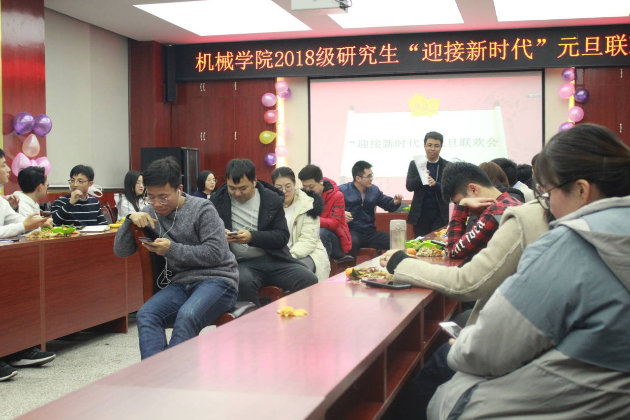 为了缓解大家的科研压力,活跃气氛,增进班级同学之间的交流以及各实验室同学之间的信任感、责任感,从而改善和增进班级同学之间的友谊,提高班级同学的归属感和班级凝聚力。Beat365唯一官方网站研究生于12月30日下午6:30,在雁塔校区机械楼210会议室开展了主题为“团结友爱、开放包容”的“迎接新时代”元旦联欢会。