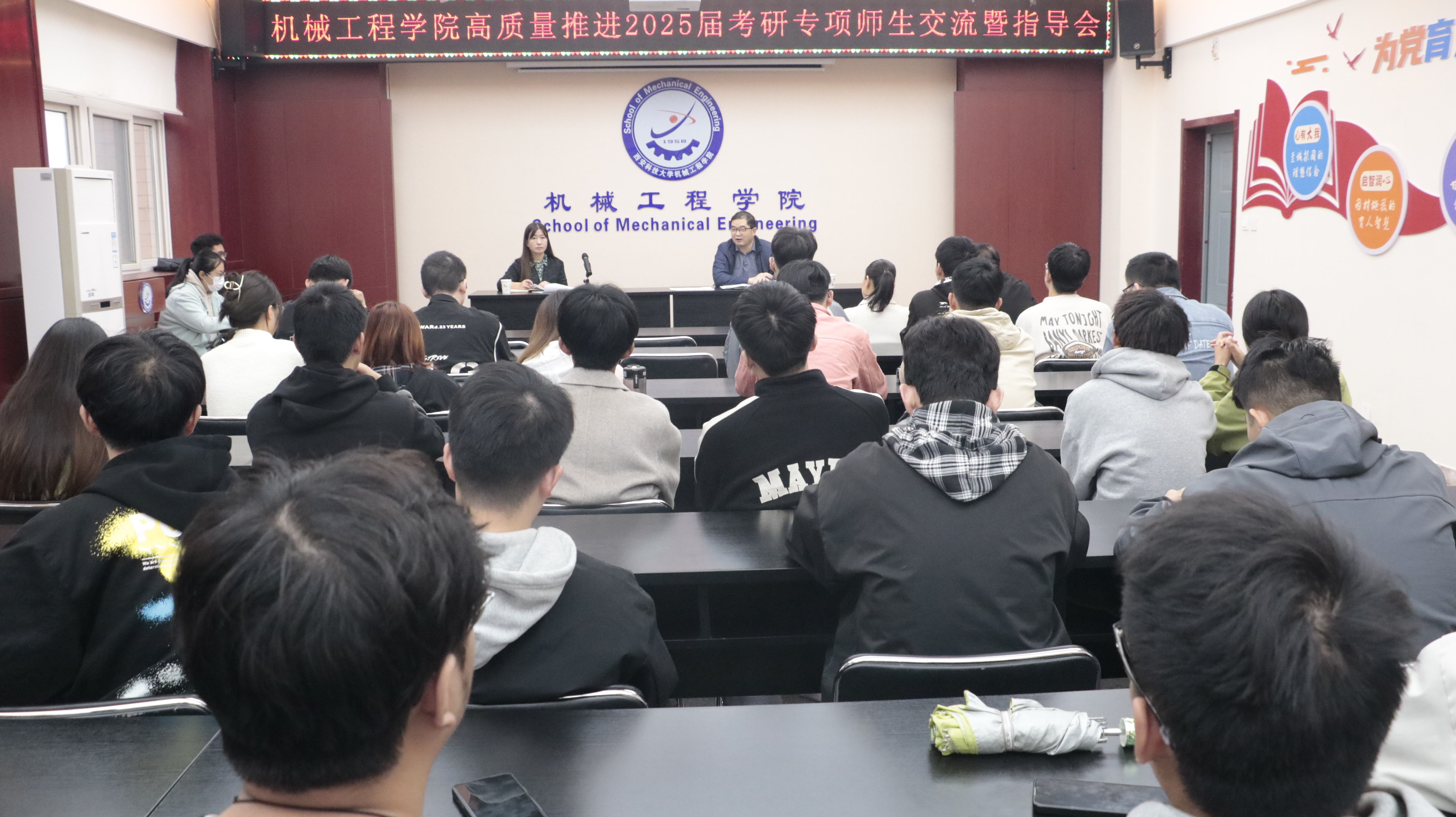 指导会上,与会师生与同学们进行了沟通交流;班主任、辅导员对同学们考研前的准备、复习时该如何规划、如何选择院校和专业、如何平衡学校正常的学习和考研等多个角度为同学们做了细致指导,勉励同学们坚定信心,合理规划安排,理性评估,找准定位,结合实际优化学习方案,做好自我调节,释放压力等提出中肯的意见和建议。院长曹现刚对同学们的勇攀知识高峰表示肯定,并结合工业4.0、中国制造2025、煤矿智能化、碳达峰碳中和承诺等国际国内科技发展战略,对国家教育、科技和人才三位一体的总体布局以及学科发展进行了深度解读。他勉励同学们珍惜时光,严格自律,脚踏实地,掌握高效的学习方法,提高学习深造的高效能,在学习中要着力提升创新意识、创新能力的培养;长远考虑,把个人的成长成才与学科发展、学校发展建设和国家发展紧密结合,坚定成才自信,不断在个人学业能力水平提升取得新突破。