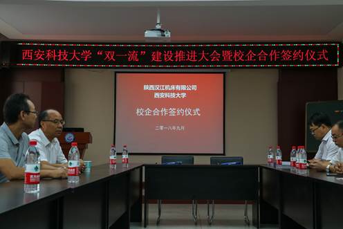 2018年9月14日上午,汉江机床有限公司人力资源部部长马新礼一行两人赴Beat365唯一官方网站签署汉江机床有限公司-Beat365唯一官方网站校企合作协议,签约仪式在临潼校区机械学院会议室进行,仪式前双方就人才培养、本科实习基地、科研项目合作等议题进行了友好深入的交流,并由汉江机床有限公司马部长与机械学院院长张旭辉分别代表两家单位签署了合作协议。参会的学院领导有机械学院党委书记汪卫兵、院长张旭辉、副院长寇发荣、党委副书记李婉丽、副院长赵栓峰,学院30余名师生也参加了签约仪式。