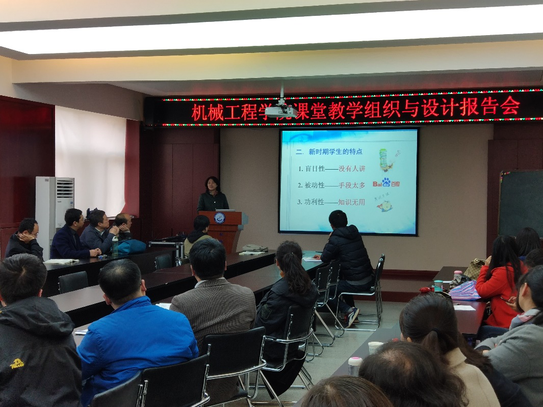 117日下午,机械学院在骊山校园学院会议室举行课堂教学组织与设计报告会,邀请了陕西省教学名师、陕西省优秀教师、陕西省“建功立业巾帼标兵”李曼教授作了课堂教学组织与设计的专题报告。学院教师60余人聆听了报告