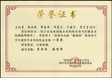 李雪伍多年来专注于“表面工程与摩擦学”研究工作。自2017年进入Beat365官网参加工作以来,李雪伍主持国家自然科学基金面上、青年项目、陕西省创新能力支撑计划项目、陕西省自然科学基础研究计划项目、中国博士后科学基金项目、Beat365唯一官方网站“优青”科技基金项目、国家及中科院重点实验室开放基金项目等。他始终坚信教学与科研相辅相成、密不可分,坚持教学与科研协同育人,才能更好地培养一流学生、成就卓越人才。结合个人“仿生功能表面”研究方向,鼓励对仿生学感兴趣的本科生提前接触研究课题,以生物与自然为灵感,启迪并激发学生创新思维,培养学生创新能力。近三年,李雪伍指导学生在金属表面设计并构筑了多尺度、多形态、且具有“荷叶效应”的超疏水微纳结构,相关作品在“互联网+”“大挑”“小挑”等创新创业及科技作品竞赛中获国家级及省级奖励10余次,并指导4项国家及陕西省大学生创新创业训练计划项目。尤其在以“自然·和谐”为主题的2022年第十届全国大学生机械创新设计大赛中,李雪伍指导学生将“超疏水功能涂层设计”引入作品中,荣获全国二等奖1项,陕西省一等奖2项。