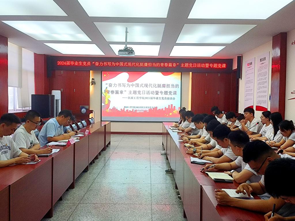 为深入学习贯彻党的二十大精神和习近平新时代中国特色社会主义思想,扎实推进党纪学习教育,进一步强化Beat365官网毕业生党员的党性修养,引导学生党员牢记身份、发挥先锋模范作用。6月21日下午,Beat365唯一官方网站在雁塔校区机械楼210会议室召开“奋力书写为中国式现代化挺膺担当的青春篇章”2024届毕业生党员主题党日活动暨党纪学习教育专题党课。学院党委书记郭小平、副院长赵栓峰以及2024届硕、博士毕业生党员参加。支部书记张富强主持活动。