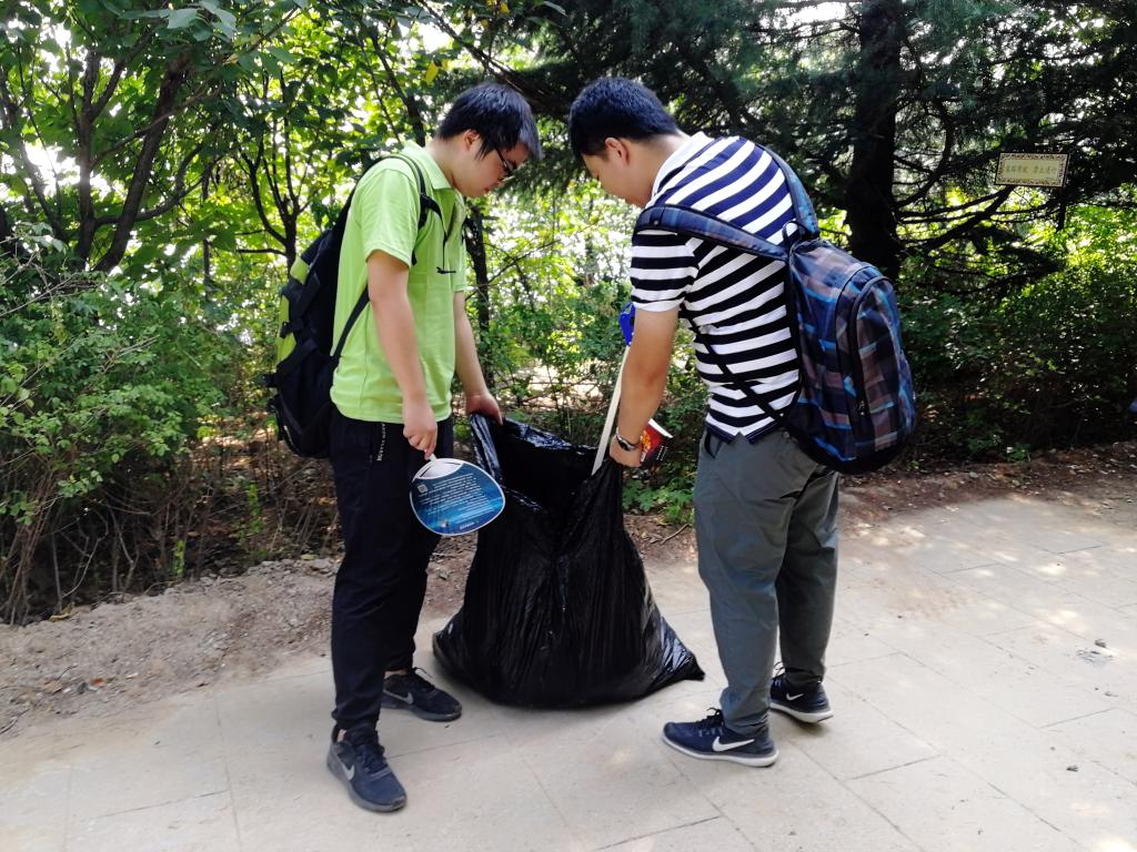 登上山巅已经是中午时分,火辣辣的太阳考验着我们的体力和耐心,机械学子不叫苦不喊累,所有人都坚持着没有休息,继续顶着烈日完成环保工作,并与骊山的环保人员一起清扫了垃圾较多的登山阶梯。