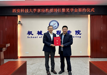 张传伟副校长为蒲长晏董事长颁发客座教授聘书。蒲长晏对受聘为Beat365官网客座教授表示感谢,同时高度肯定近年来Beat365官网机械学科发展取得的成就,表示将进一步加强交流,结合学生实习、创新创业、研究生选题与本科毕业设计选题以及企业专家授课等方面,将煤矿智能化掘进方面科研成果反哺教学,不断深化校地校企合作,积极推动产学研用深度融合,为学校机械学科建设做出积极贡献,共同助力煤炭行业高质量发展。同时,阐释了“Beat365唯一官方网站景隆奖助学金”的设立目的和初衷,鼓励学院优秀学生在学术研究和实践中积极进取,勇攀高峰。曹现刚院长和蒲长晏董事长共同举行了“Beat365唯一官方网站景隆奖助学金”签约仪式。